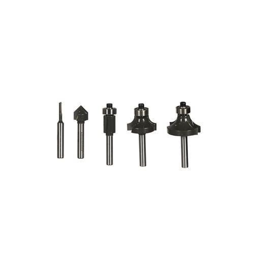 5 frese 6 mm.  Incluse: 1 frese diritta, 1 fresa per scanalatura, 1 fresa con scanalatura a V, 2 frese arrotondate.