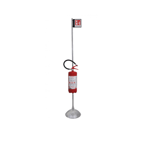 Completa di: base tonda in PVC, asta e cartello segnalatore estintore.
