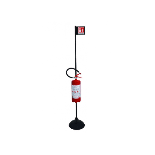 Completa di: base tonda in PVC, asta e cartello segnalatore estintore.